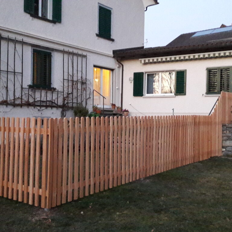 Für Holzzäune wird meistens Kesseldruckimprägniertes Holz verwendet. Bei naturbelassenem Holz verwenden wir meist Schweizer Lärchenholz sowie Kastanie und Akazienholz.